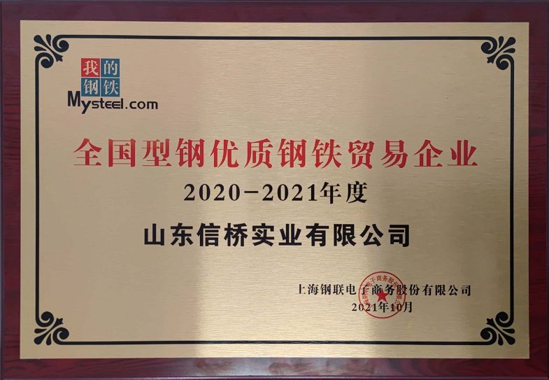 山東信橋實業(yè)有限公司獲全國型鋼優(yōu)質鋼鐵貿易企業(yè)(2020-2021年度)